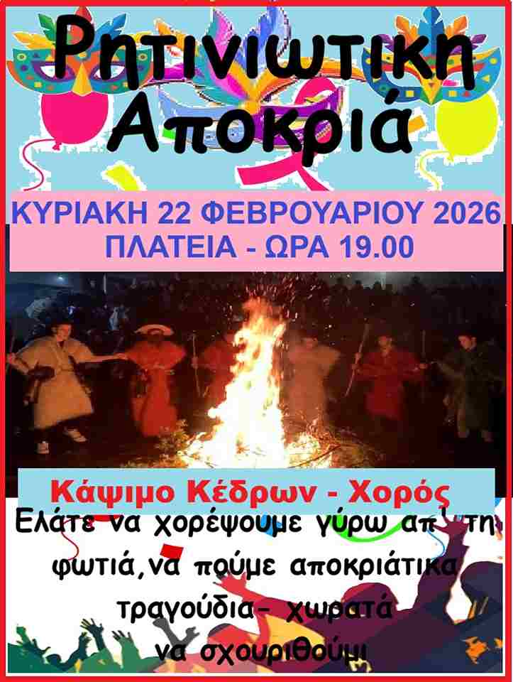 Το βράδυ της Κυριακής 22 Φεβρουαρίου 2026, ώρα 19.00 στην κεντρική πλατεία Την περίοδο της Αποκριάς στη Ρητίνη συνήθιζαν τα…
