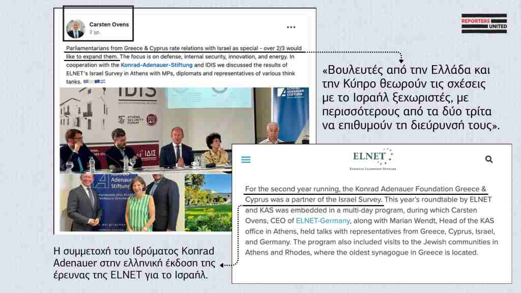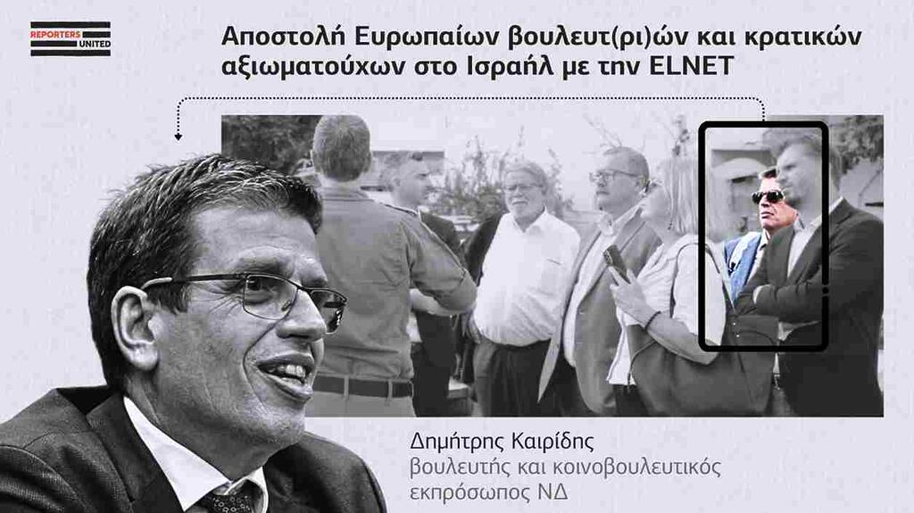 Στα πρότυπα της AIPAC, του ισραηλινού λόμπι που ασκεί επιρροή στο πολιτικό σύστημα των ΗΠΑ, μια άγνωστη ώς τώρα οργάνωση προσπαθεί να κάνει το ίδιο στην Ευρώπη – και στην Ελλάδα. Καταγράφουμε τα ίχνη της ELNET στη χώρα μας, με αιχμή το ταξίδι του βουλευτή και κοινοβουλευτικού εκπροσώπου της ΝΔ Δημήτρη Καιρίδη στο Ισραήλ εν μέσω γενοκτονίας. Έρευνα Reporters United σε συνεργασία με διεθνή ΜΜΕ: Τhe Diasporist, TAZ και ND (Γερμανία), Intercept (ΗΠΑ), Mediapart (Γαλλία).