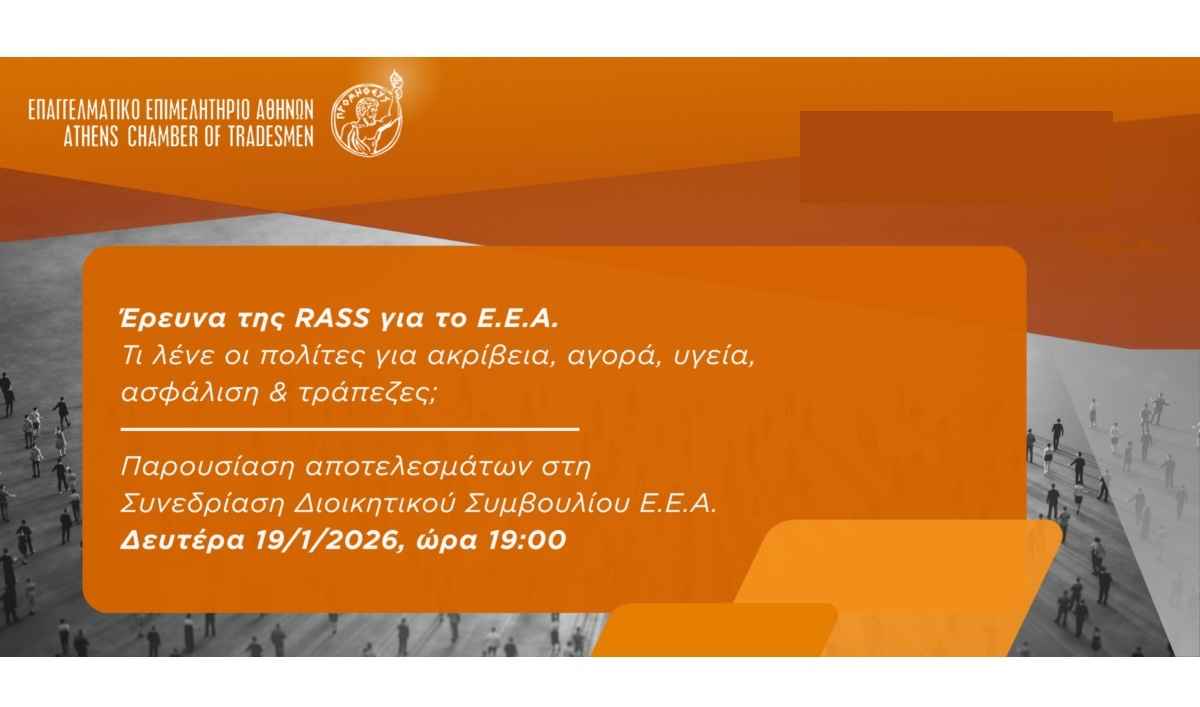 Τα αποτελέσματα της έρευνας παρουσιάστηκαν αναλυτικά στη συνεδρίαση του Διοικητικού Συμβουλίου του Ε.Ε.Α. σήμερα, Δευτέρα 19/1/2026, στις 19:00.