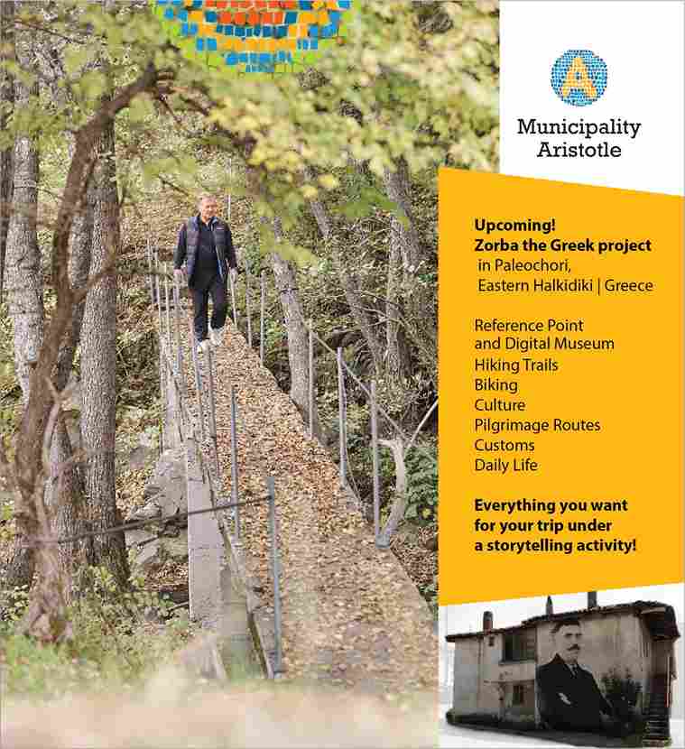 Σημειώνεται ότι ο Δήμος Αριστοτέλη μετατρέπει οικία που βρίσκεται σε κεντρικό σημείο του Παλαιοχωρίου σε «σημείο ιστορικής αναφοράς για τον Αλέξη Ζορμπά», όπου η ψηφιακή περιήγηση δίνει την ευκαιρία στον επισκέπτη να ενημερώνεται και «να συνομιλεί» με τον καζαντζακικό ήρωα.