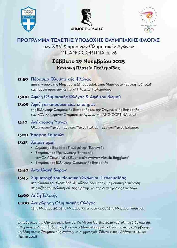 Η Πτολεμαΐδα γίνεται πόλη–σταθμός της Ολυμπιακής Λαμπαδηδρομίας MILANO