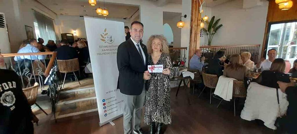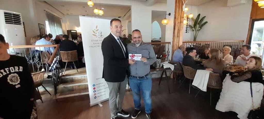 Τυχεροί αναδείχθηκαν, από τα μέλη Δ.Σ. του Επιμελητηρίου, ο Κλεάνθης Σπανός, από το προσωπικό και τους συνεργάτες η υπεύθυνη λογιστηρίου Τσερβελή Γιάννα και τους επισήμους ο Αντιδήμαρχος Διοικητικής Μέριμνας και Πρόνοιας του Δήμου Πολυγύρου Αθανάσιος Τσίγκας.
