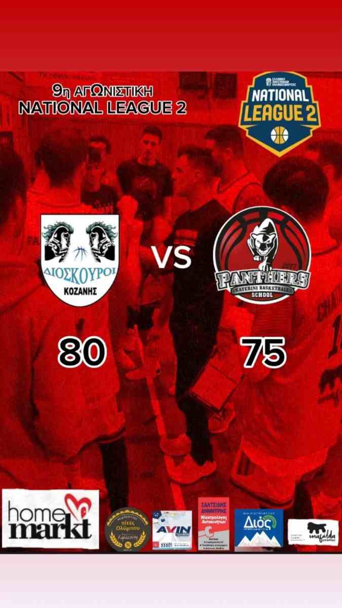 Μια συναρπαστική αναμέτρηση έδωσε ο ΓΑΣΠ Πάνθηρες Κατερίνης στην Κοζάνη, χάνοντας στις λεπτομέρειες τη μεγάλη νίκη απέναντι στους Διόσκουρους με τελικό σκορ 80-75, για την 9η αγωνιστική της National League 2.