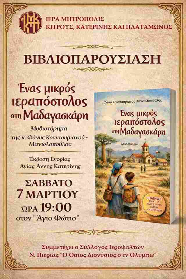 HomeΠΙΕΡΙΑΒιβλιοπαρουσίαση στο Πνευματικό Κέντρο ”ΑΓΙΟΣ ΦΩΤΙΟΣ” της Ιεράς Μητροπόλεως Κίτρους, Κατερίνης και Πλαταμώνος Βιβλιοπαρουσίαση στο Πνευματικό Κέντρο ”ΑΓΙΟΣ ΦΩΤΙΟΣ” της Ιεράς Μητροπόλεως Κίτρους, Κατερίνης και Πλαταμώνος 3 Μαρτίου 20263 Μαρτίου 2026Ο Διάλογος “Ένας μικρός ιεραπόστολος στη Μαδαγασκάρη” – Σάββατο 7 Μαρτίου 2026 Ο ΔιάλογοςΟμάδα Σύνταξης at Ο Διάλογος | [email protected] | Website | + postsBio ⮌Ο ΔιάλογοςΦ. Μπαραλιάκος: «Η Δημοκρατία, μας χωρά όλους» – Ομιλία για την ψήφο του Απόδημου ΕλληνισμούΟ ΔιάλογοςΟι Υπουργοί και τα πολιτικά πρόσωπα που αποδεδειγμένα ήταν στόχοι του Predator, οφείλουν να εξηγήσουν γιατί δεν αντέδρασανΟ ΔιάλογοςΗ Περιφερειακή Ενότητα Πιερίας συνεχίζει τις αναγκαίες εργασίες καθαρισμού ρεμάτων και τάφρωνΟ ΔιάλογοςΣτο Επιμελητήριο Πιερίας πραγματοποιήθηκε η συνεδρίαση του Περιφερειακού Επιμελητηριακού Συμβουλίου Κεντρικής Μακεδονίας