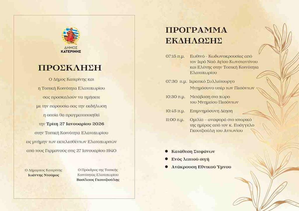 HomeΠΙΕΡΙΑΔήμος Κατερίνης: Εκδήλωση Μνήμης & Τιμής θυμάτων κατοχής στο Ελατοχώρι (πρόσκληση – πρόγραμμα) Δήμος Κατερίνης: Εκδήλωση Μνήμης & Τιμής θυμάτων κατοχής στο Ελατοχώρι (πρόσκληση – πρόγραμμα) 21 Ιανουαρίου 202621 Ιανουαρίου 2026Ο Διάλογος Ο ΔιάλογοςΟμάδα Σύνταξης at Ο Διάλογος | [email protected] | Website | + postsBio ⮌Ο Διάλογος2026, το διεθνές έτος αγρότισσαςΟ ΔιάλογοςΙταλικό colpo grosso 10 δισ. ευρώ για τη MercosurΟ ΔιάλογοςΚΑΠΗ Δήμου Κατερίνης: Εκδήλωση για την κοπή της πρωτοχρονιάτικης πίταςΟ ΔιάλογοςΔήμος Κατερίνης: Εκδήλωση Μνήμης & Τιμής θυμάτων κατοχής στο Ελατοχώρι (πρόσκληση – πρόγραμμα)
