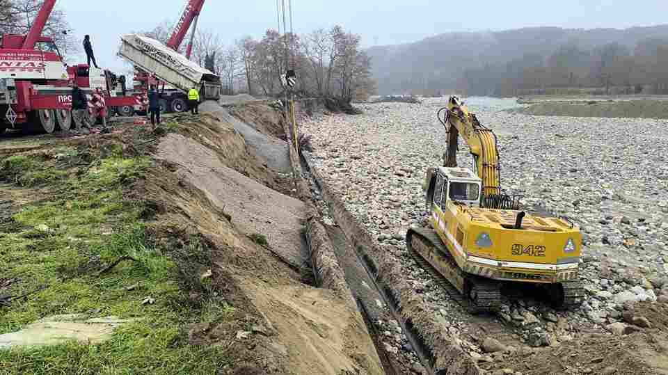 Οι εργασίες ξεκίνησαν αμέσως μετά από την ολοκλήρωση της εκτροπής της κοίτης του ποταμού από την Περιφερειακή Ενότητα Πιερίας, που ήταν απαραίτητη προϋπόθεση, ώστε οι μηχανικοί της Τεχνικής Υπηρεσίας της ΔΕΥΑΚ να μπορούν να προχωρήσουν με ασφάλεια στην στήριξη του αγωγού.