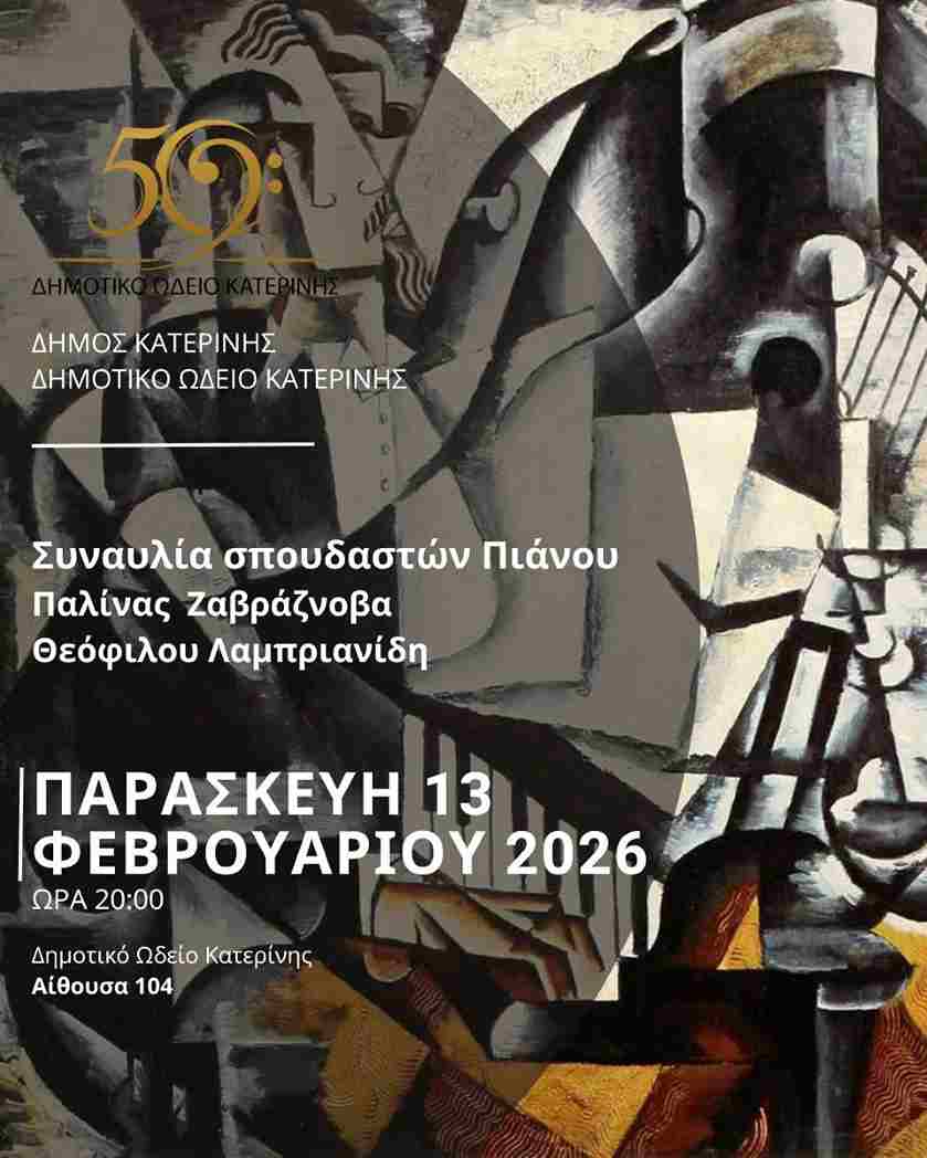 HomeΠΙΕΡΙΑΔημοτικό Ωδείο Κατερίνης: Συναυλία σπουδαστών Πιάνου Παλίνας Ζαβράζνοβα – Θεόφιλου Λαμπριανίδη Δημοτικό Ωδείο Κατερίνης: Συναυλία σπουδαστών Πιάνου Παλίνας Ζαβράζνοβα – Θεόφιλου Λαμπριανίδη 11 Φεβρουαρίου 202611 Φεβρουαρίου 2026Ο Διάλογος Ο ΔιάλογοςΟμάδα Σύνταξης at Ο Διάλογος | [email protected] | Website | + postsBio ⮌Ο ΔιάλογοςΜοναδική Καθαρά Δευτέρα με την «Ταραχιά» στην ΡητίνηΟ ΔιάλογοςΤα «Λιαγκατζιάρια» στην Ρητίνη χορεύουν και «ξιαδιακόβουν» τη φωτιάΟ ΔιάλογοςΤο «4Ο Κυνήγι του Θησαυρού» στην Ρητίνη αποκαλύπτει μύθους διατηρεί την παράδοσηΟ ΔιάλογοςSILVER διάκριση για τον Δήμο Εορδαίας στα Best City Awards 2026 για το έργο έξυπνης άρδευσης στο Μηλοχώρι