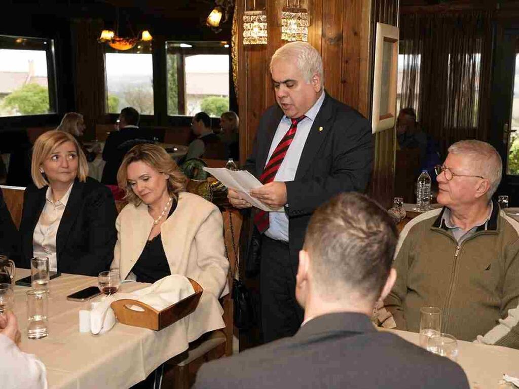 Στην προσφώνησή του επί της υποδοχής των ομιλητών αλλά και των προσκεκλημένων, ο πρόεδρος του τμήματος «Ολύμπιος Ζευς» Κατερίνης και Αντικυβερνήτης της ΑΧΕΠΑ ΕΛΛΑΣ Παναγιώτης Ταρενίδης – MD, PhD- Ειδικός Καρδιολόγος, αφού ευχαρίστησε για την παρουσία όλων παρά τις δύσκολες καιρικές συνθήκες, αναφέρθηκε στην ιστορική διαδρομή της Ομογενειακής Οργάνωσης που ιδρύθηκε το έτος 1922, καθώς και στα αντίστοιχα της ελλαδικής περιφέρειας (το 2000) και της Κατερίνης το οποίο δημιουργήθηκε πριν από επτά χρόνια.