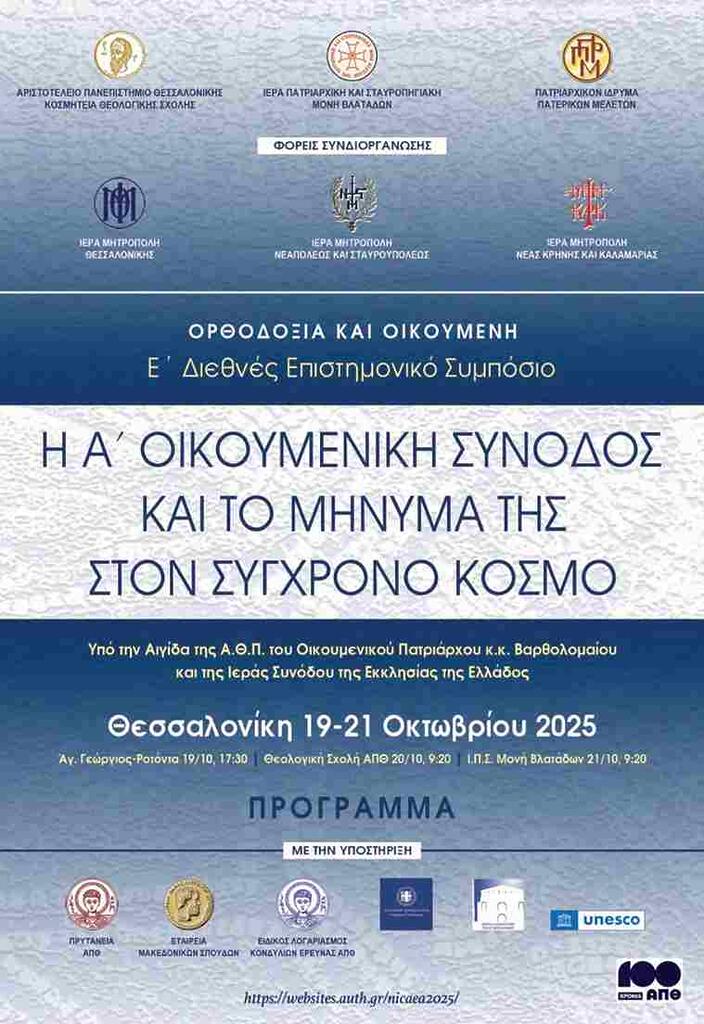 Από 19 Οκτωβρίου έως 21 Οκτωβρίου πραγματοποιήθηκε στη Θεσσαλονίκη Διεθνές Επιστημονικό Συνέδριο με τίτλο: «Η Α´ Οικουμενική Σύνοδος και το μήνυμά της στον σύγχρονο κόσμο»