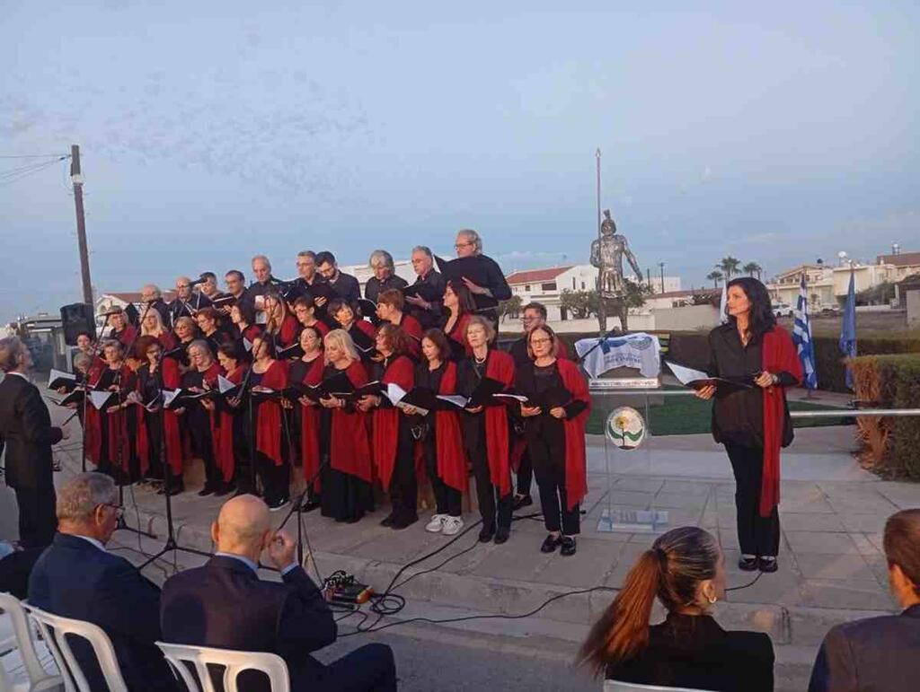 Εκεί η χορωδία μας ερμήνευσε δύο κορυφαία έργα, τον ΄Εφεδρο Ανθυπολοχαγό και το Εις Σάμον, καθόσον αυτό επιβάλλονταν από το κλίμα της εκδήλωσης, με διάχυτη τη συγκίνηση από το σύνολο των παρευρισκομένων.