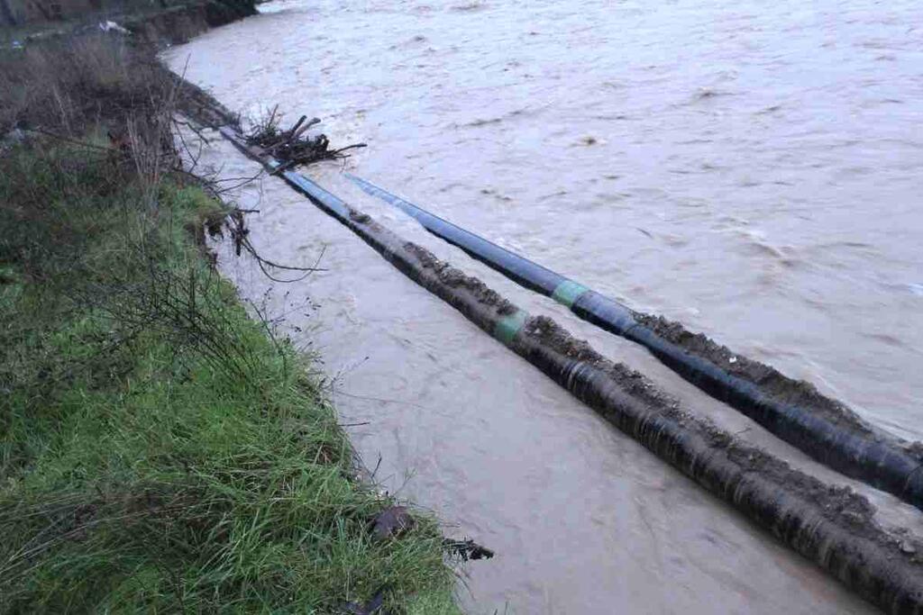 Η υποχώρηση των πρανών αποκάλυψε τμήμα του κεντρικού αγωγού μεταφοράς νερού που υδρεύει την πόλη της Κατερίνης