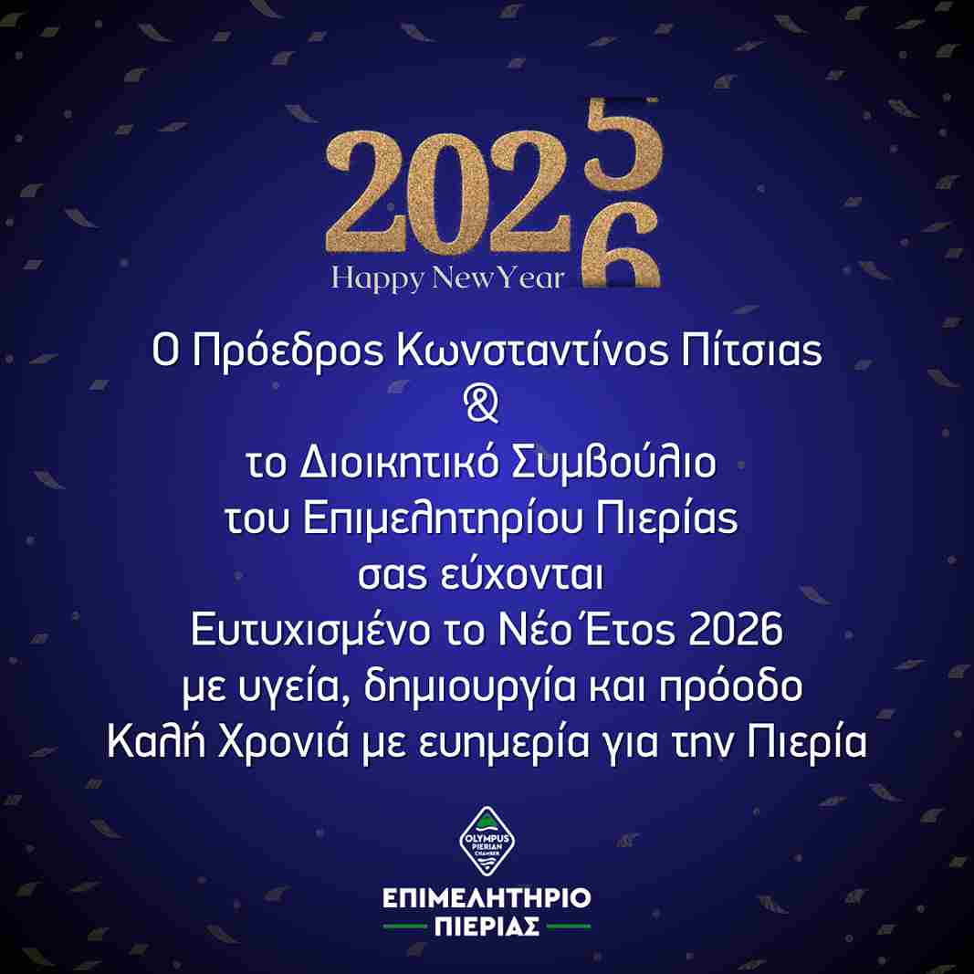 Ευχές για το 2026 του Προέδρου του Επιμελητηρίου Πιερίας Κωνσταντίνου Πίτσια