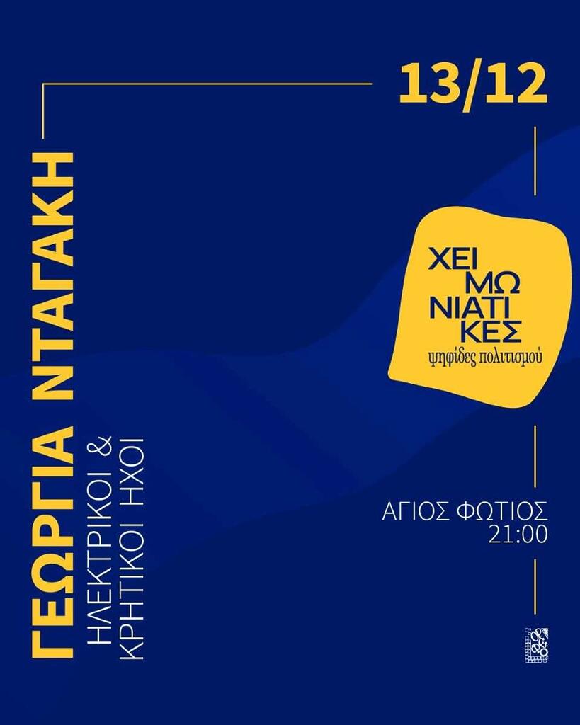 Η παράδοση συναντά την σύγχρονη μουσική έκφραση. Η μοναδική ερμηνεύτρια Γεωργία Νταγάκη μας υπόσχεται ότι αυτή την συνάντηση θα την απολαύσουμε στην συναυλία της το Σάββατο 13 Δεκεμβρίου 2025 στις 9:00 το βράδυ, στο πλαίσιο των φετινών «Χειμωνιάτικων Ψηφίδων Πολιτισμού» που υλοποιεί για δεύτερη χρονιά ο Οργανισμός Φεστιβάλ Ολύμπου.