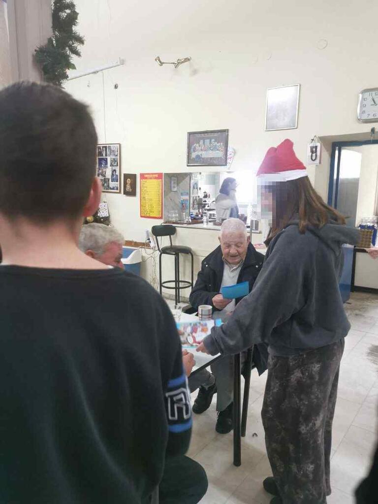 Οι μικροί μαθητές, συνοδευόμενοι από τους εκπαιδευτικούς τους, έγιναν δεκτοί με μεγάλο ενθουσιασμό από τους ηλικιωμένους. Στο πλαίσιο της επίσκεψης, έψαλαν τα παραδοσιακά κάλαντα και πρόσφεραν στα μέλη του ΚΑΠΗ χειροποίητες χριστουγεννιάτικες κάρτες που φιλοτέχνησαν στο σχολείο, στέλνοντας ευχές για υγεία και ευτυχισμένες γιορτές. Με τη σειρά τους, τα μέλη του ΚΑΠΗ μοιράστηκαν ιστορίες από τα Χριστούγεννα των δικών τους παιδικών χρόνων, δημιουργώντας μια ουσιαστική «γέφυρα» επικοινωνίας μεταξύ των δύο γενεών και μια ατμόσφαιρα γιορτής και συγκίνησης.