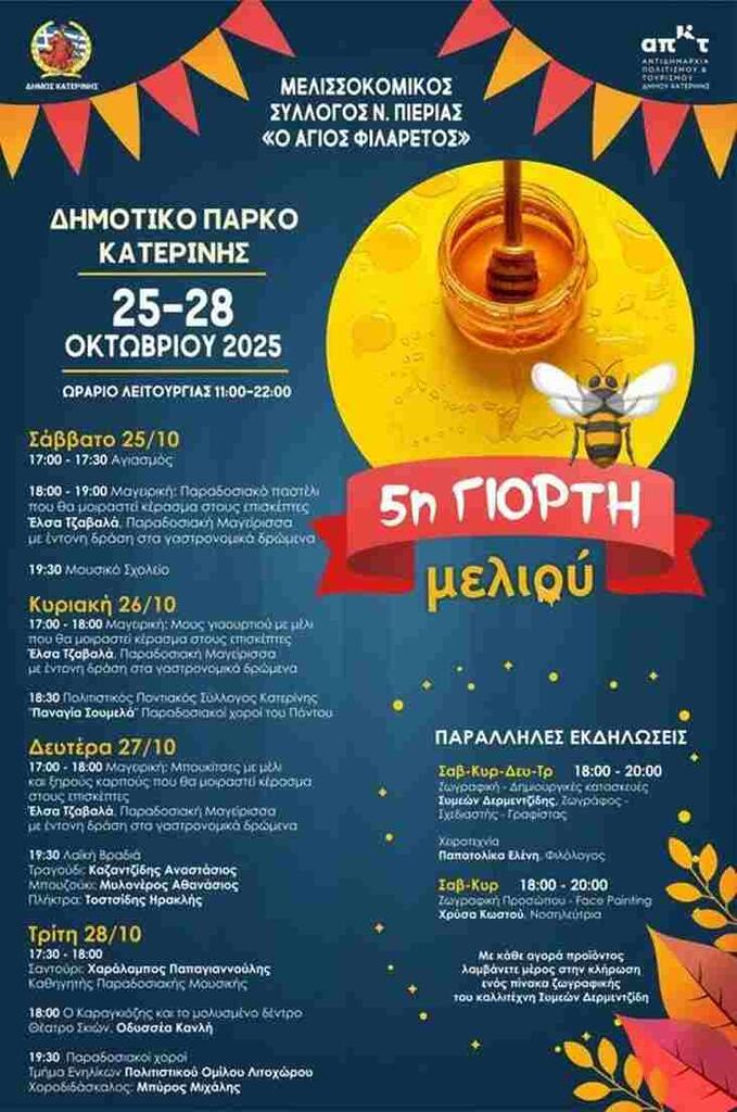 HomeΠΙΕΡΙΑ5η Γιορτή μελιού στο Δημοτικό Πάρκο Κατερίνης – 25 έως 28 Οκτωβρίου 5η Γιορτή μελιού στο Δημοτικό Πάρκο Κατερίνης – 25 έως 28 Οκτωβρίου 20 Οκτωβρίου 202520 Οκτωβρίου 2025Ο Διάλογος Ο ΔιάλογοςΟμάδα Σύνταξης at Ο Διάλογος | [email protected] | Website | + postsBio ⮌Ο Διάλογοςhttps://odialogos.gr/author/odialogos/Σάκης Αρναούτογλου προς Κάγια Κάλας: Η Τουρκία συνεχίζει να φιμώνει τη δημοσιογραφία – Η Ευρώπη δεν μπορεί να σιωπάΟ Διάλογοςhttps://odialogos.gr/author/odialogos/Εκπαιδευτικό σεμινάριο γονέων «Στο βηματισμό του μικρού παιδιού»Ο Διάλογοςhttps://odialogos.gr/author/odialogos/Σπύρος Κουλκουδίνας: “Από το Νοέμβριο τα μέτρα στήριξης της κοινωνίας, πολιτών και συνταξιούχων”Ο Διάλογοςhttps://odialogos.gr/author/odialogos/Δράση Ενημέρωσης & Εμβολιαστικής Κάλυψης Ηλικιωμένων στα ΚΑΠΗ του Δήμου Κατερίνης