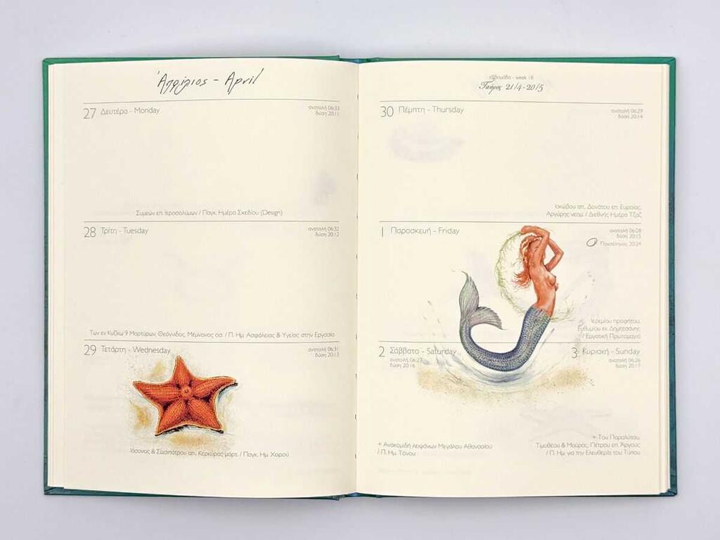 44 είδη ζωής πανίδας και χλωρίδας της θάλασσας έχουν την τιμητική τους στα δύο έντυπα της νέας σειράς, το Ημερολόγιο και το Λεύκωμα, με λεπτομερείς υδατογραφίες και κείμενα με πληροφορίες για τη ζωή και τις συνήθειές τους.